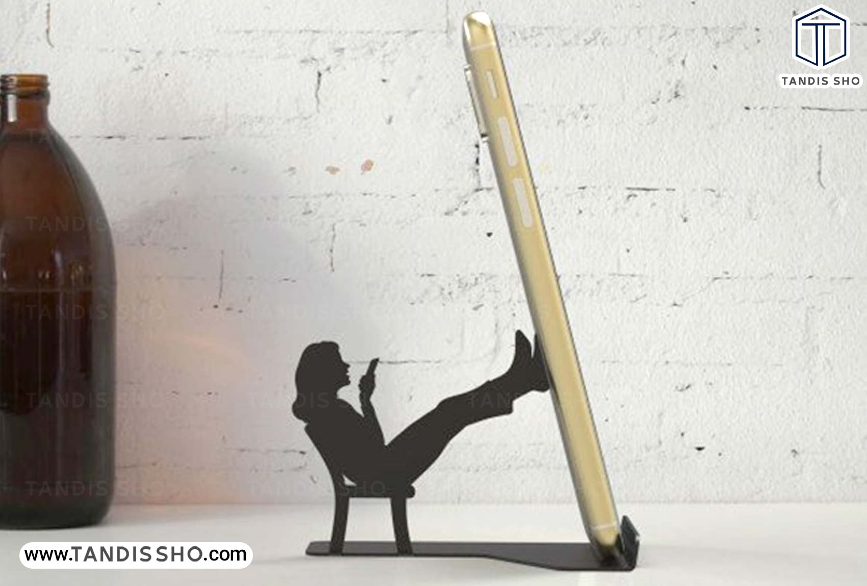 استند موبایل بانوی نشسته با شکل زن روی صندلی و نگه داشتن موبایل با پاها، جلوهای فانتزی و متفاوت به میز شما میبخشد و مناسب استفاده شخصی یا دکوری است.