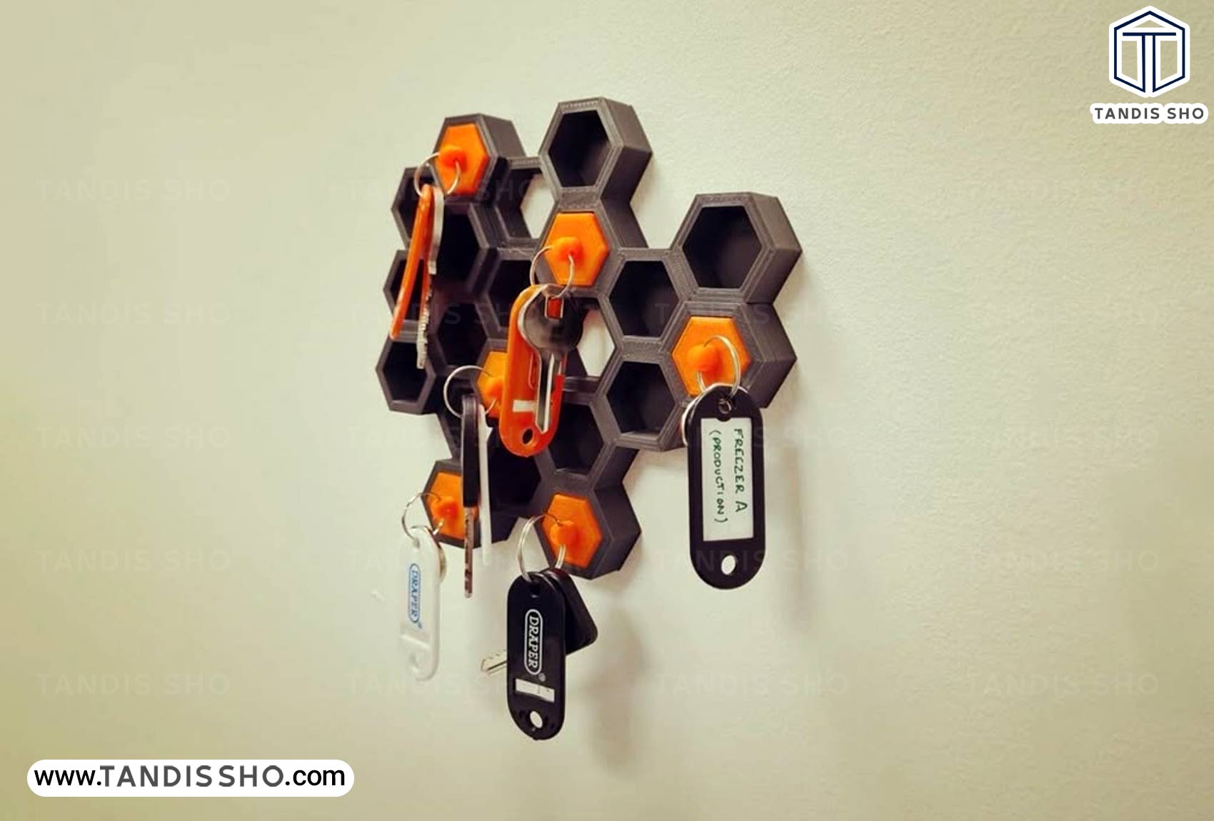 جاکلیدی دیواری کندویی با طراحی شیک و کاربردی، مناسب برای نظم بخشیدن به کلیدها است. این محصول سبک، بادوام و نصب آن آسان است و مزیت رقابتیاش در طراحی خاص کندویی میباشد.
